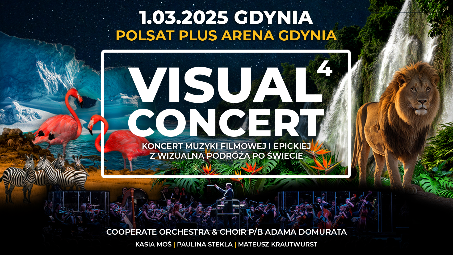 Ponad 80-osobowa Orkiestra Symfoniczna CoOperate Orchestra & Choir pod batutą Adama Domurata wypełni muzyczną przestrzeń w rytm filmowego obrazu, ukazującego najbardziej spektakularne zakątki świata, niesamowite zwierzęta, ciekawych ludzi i wyjątkowe chwile uchwycone okiem kamery. Koncert uświetnią soliści: Kasia Moś, Maria Antkowiak-Świątek / Paulina Stekla, Mateusz Krautwurst.