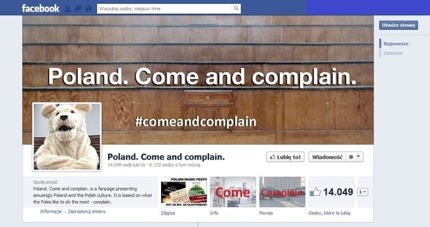 Fan page "Poland. Come and Complain" na Facebooku /Facebook /