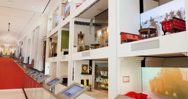 Jednym z pierwszych elementów wystawy jest replika Białego Domu w skali 1:5, przypominająca domek dla lalek. Trzy piętra budynku są w pełni wyposażone, a interaktywny ekran umożliwia wybór pokoju oraz scenariusza historycznego. Na przykład możemy obejrzeć moment, w którym Brytyjczycy podpalają Biały Dom. Dzięki nowoczesnym technologiom replika "ożywa", a budynek staje w płomieniach.