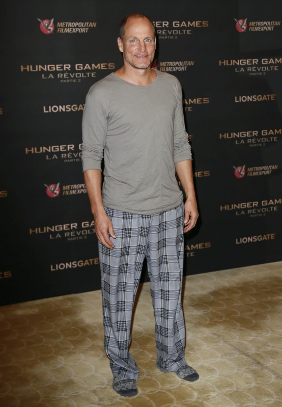 Słynący z ekstrawagancji aktor pozował przy ściance odziany w kraciaste spodnie od piżamy i koszulkę z długim rękawem. Nie miał nawet butów. Pochwalił się za to wzorzystymi skarpetkami. Wyglądał, co najmniej osobliwie w towarzystwie Lawrence, która zadawała szyku w sukience Diora. Można było odnieść wrażenie, że Harrelson chwilę wcześniej został wyrwany z drzemki w pokoju hotelowym.