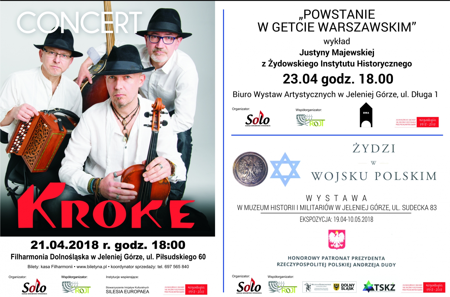 Ekspozycję związaną z 75. rocznicą powstania w getcie warszawskim przygotowano w Jeleniej Górze. Od 19 kwietnia do 20 maja w Muzeum Historii Militariów (ul. Sudecka 83) oglądać można wystawę "Żydzi w Wojsku Polskim". Wystawa w Muzeum Historii Militariów opisuje udział Żydów w Wojsku Polskim, w okresie od XV w. do końca II wojny światowej. W szczególności prezentuje postać Berka Joselewicza, uczestnika Powstania Kościuszkowskiego. Ukazano także sylwetki generałów Wilhema Orlika-Ruckemanna i Bernarda Monda - Żydów służących w regularnych jednostkach Wojska Polskiego podczas II wojny światowej. Wystawa pokazuje ponadto takie wydarzenia, jak: walka Żydów o wolną Polskę i jej granice w XIX w. oraz udział Żydów w walce o niepodległość.