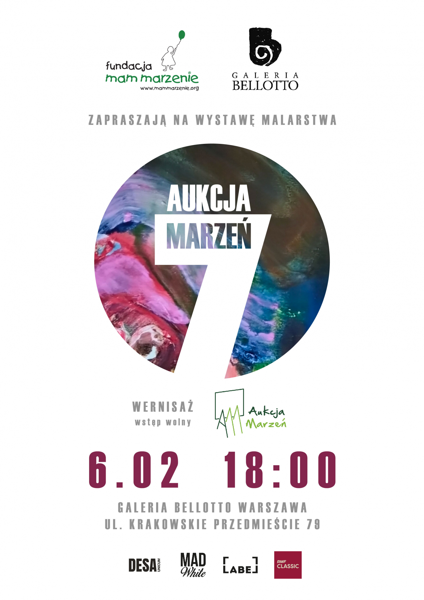 Kulminacją projektu będzie charytatywna aukcja dzieł sztuki, która odbędzie się w marcu w Domu Aukcyjnym DESA Unicum. Cały dochód z licytacji zostanie przeznaczony na realizację marzeń podopiecznych Fundacji Mam Marzenie.