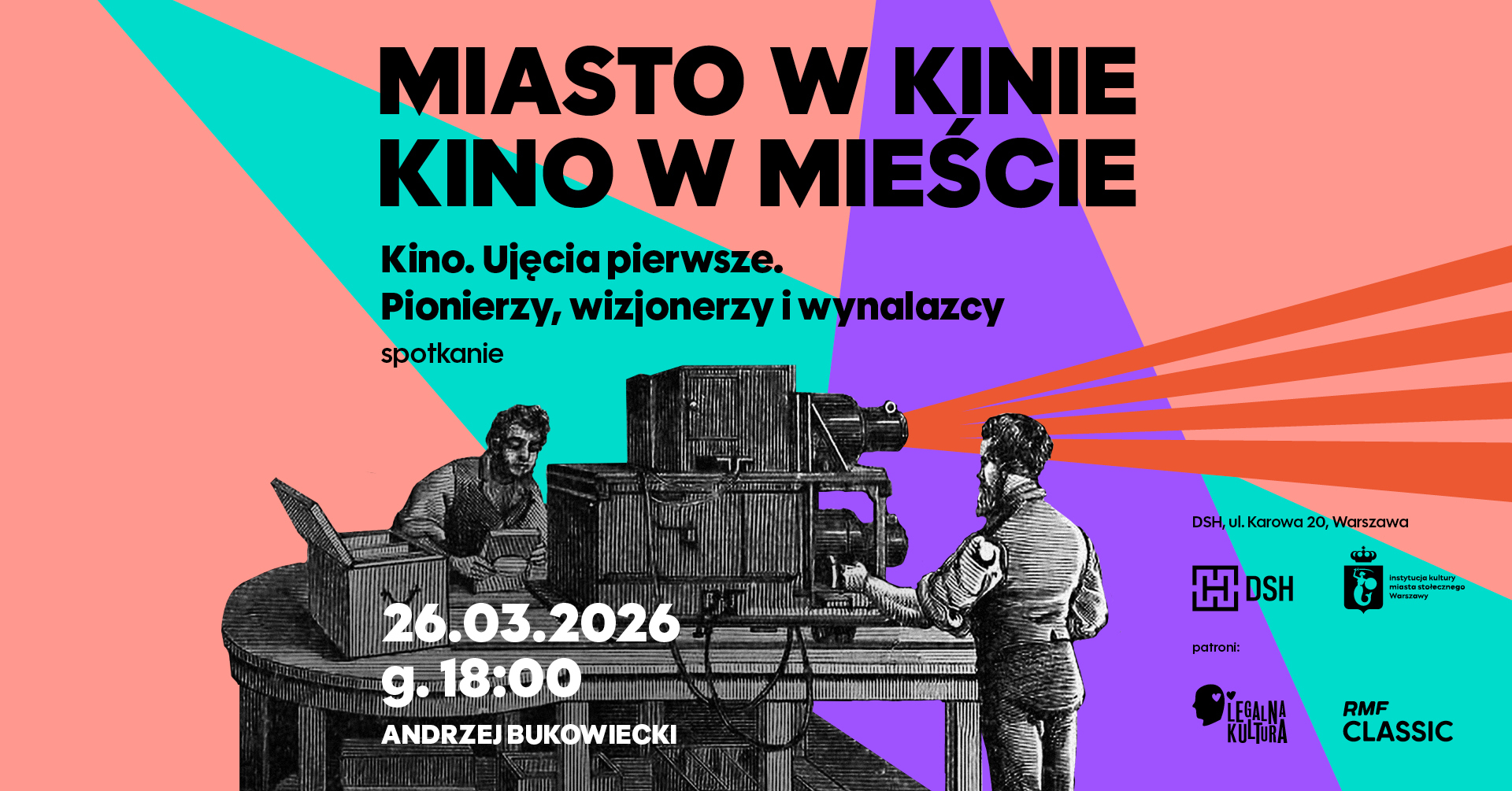 26.03.2026, g. 18:00 Kino. Ujęcia pierwsze. Pionierzy, wizjonerzy i wynalazcy | Andrzej Bukowiecki