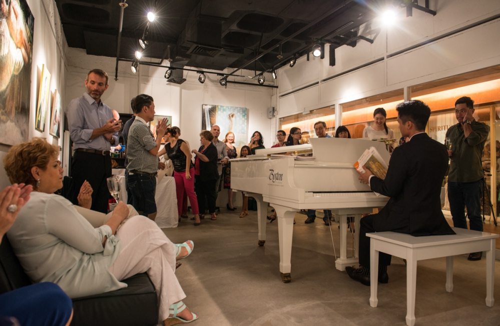 Podczas wernisażu Galerię Sabiany Paoli odwiedzili kolekcjonerzy, bohaterowie obrazów, krytycy sztuki i dziennikarze. Dzięki uprzejmości Steinway Gallery Singapore, która - w geście wsparcia dla dynamicznej wymiany między dziedzinami sztuki - użyczyła Galerii fortepianu „Boston”, goście Roberta Latosia wzięli udział również w koncercie. Kiedy patrzyłem na obrazy Roberta, doszedłem do wniosku, że muzyka Chopina i Rachmaninowa idealnie do nich pasuje, tworząc jednocześnie ciekawą kompozycję międzykulturową konfrontacji z bohaterami portretów – komentuje Niall Sohan, singapurski pianista, którego recital stanowił niespodziankę towarzyszącą wernisażowi.