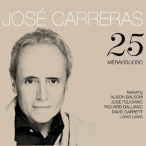 "25" to także tytuł nowego albumu, jaki José Carreras nagrał wraz z przyjaciółmi takimi jak José Feliciano, Lang Lang, Richard Galliano , Alison Balsom i David Garrett (producentem albumu jest Christian Kolonovits). Zaczyna się od wzruszających, brzmiących jak hymn dźwięków „Adoro”, w którym Carrerasowi towarzyszy śpiewając i grając na gitarze niezrównany Jose Feliciano. I znów Carraeras ukazuje swój niezwykły talent, pozwalający mu natchnąć radością życia znany przebój. "Esta tarde" to duet między pojedynczym głosem ludzkim, a olśniewającą grą pianistyczną Lang Langa. W „La Strada” Carreras oddaje hołd jednej z najpiękniejszych piosenek w historii muzyki filmowej: maluje pejzaże dźwiękowe w precyzyjnie skomponowanej formie. Nie ma tu sztywnego podejścia, ale czujemy wzbierającą przyjemność, wpadające w ucho melodie i miłosne metafory. Oszałamiające solówki trąbki wykonuje piękna Angielka Alison Balsom, która otrzymała już trzykrotnie nagrodę krytyków angielskich Classical Brit Award, a także Echo Award w kategorii muzyki klasycznej. Richard Galliano, jeden z najlepszych akordeonistów na świecie, akompaniuje José Carrerasowi w utworze “Non Dimenticar " ukazując jego muzyczną złożoność. Jeden z przebojów tego albumu streszcza w swym tytule credo Carrerasa: “Meraviglioso" (cudownie). To hołd złożony nowemu życiu. W czasie filmowania Cyganerii, Carrerasowi dawano na przeżycie jedną szansę na dziesięć. Ale on nigdy nie tracił nadziei, podjął walkę i wyzdrowiał.