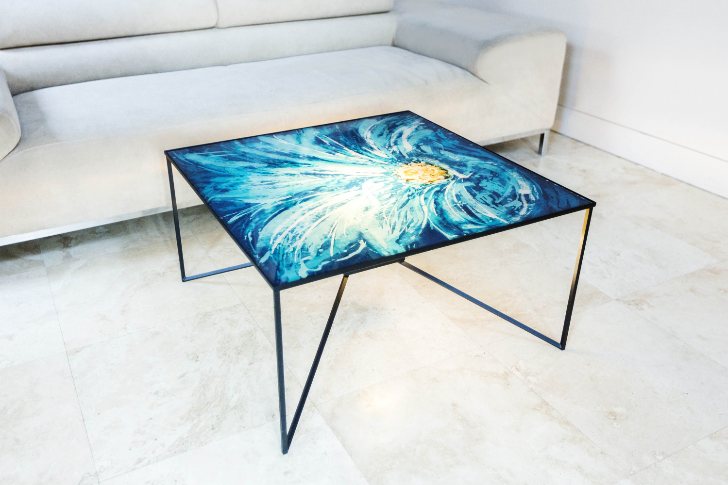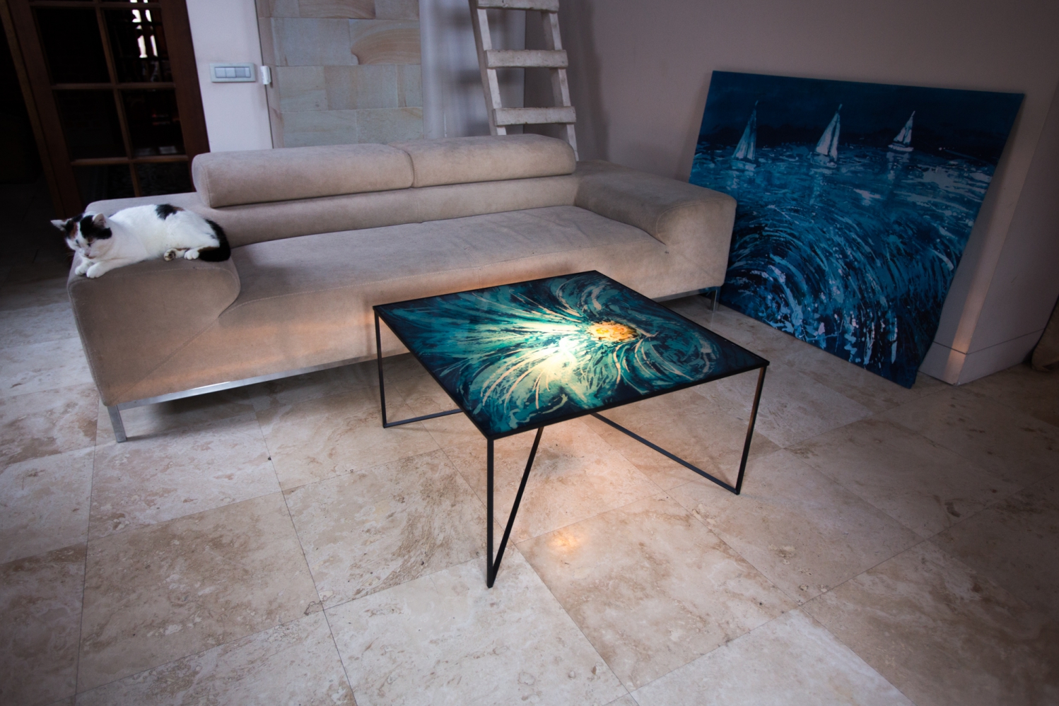 Malarka i projektantka Marta Mulawa wpisuje swoje barwne batiki w podświetlane meble. Pierwszy z serii tych unikatowych mebli - stolik kwiatowy.