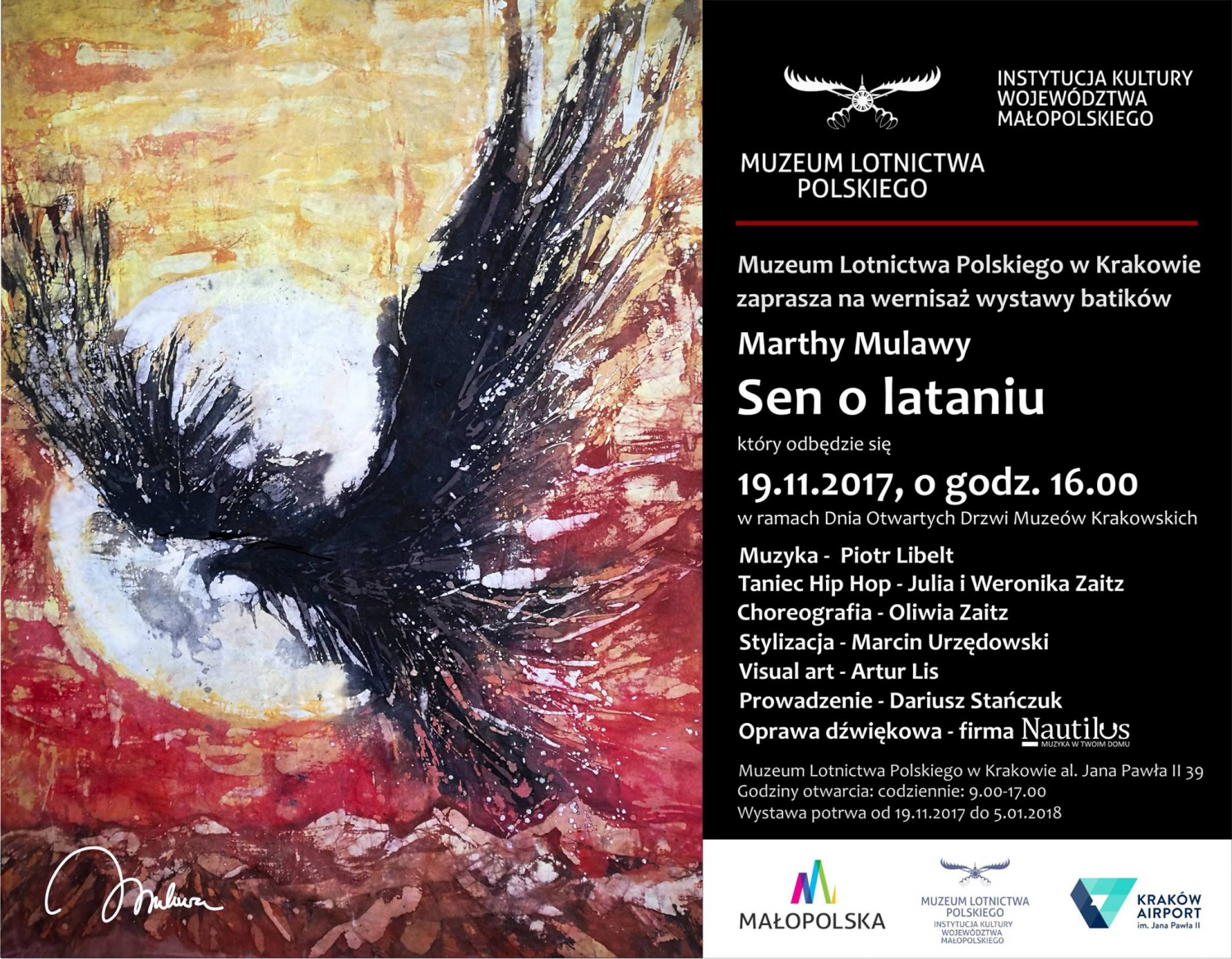 "Sen o lataniu" - wystawa batików Marty Mulawy w oprawie multimedialnej - w Muzeum Lotnictwa w Krakowie. Start multimedialnego pokazu - 19 listopada g. 16:00, polecamy!