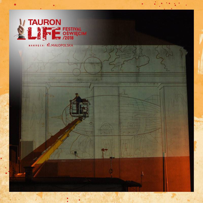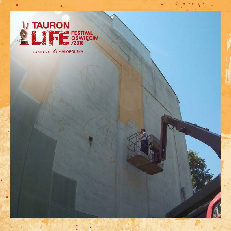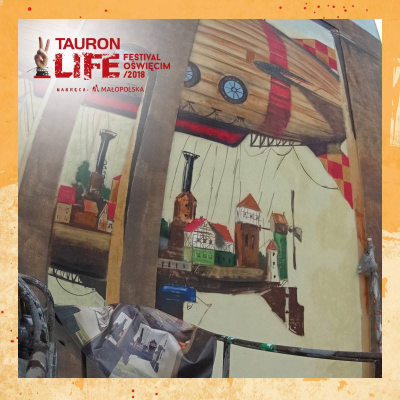 Mural tegorocznego Tauron Life Festival Oświęcim. Autorem jest przedstawiciel realizmu magicznego Jarosław Jaśnikowski